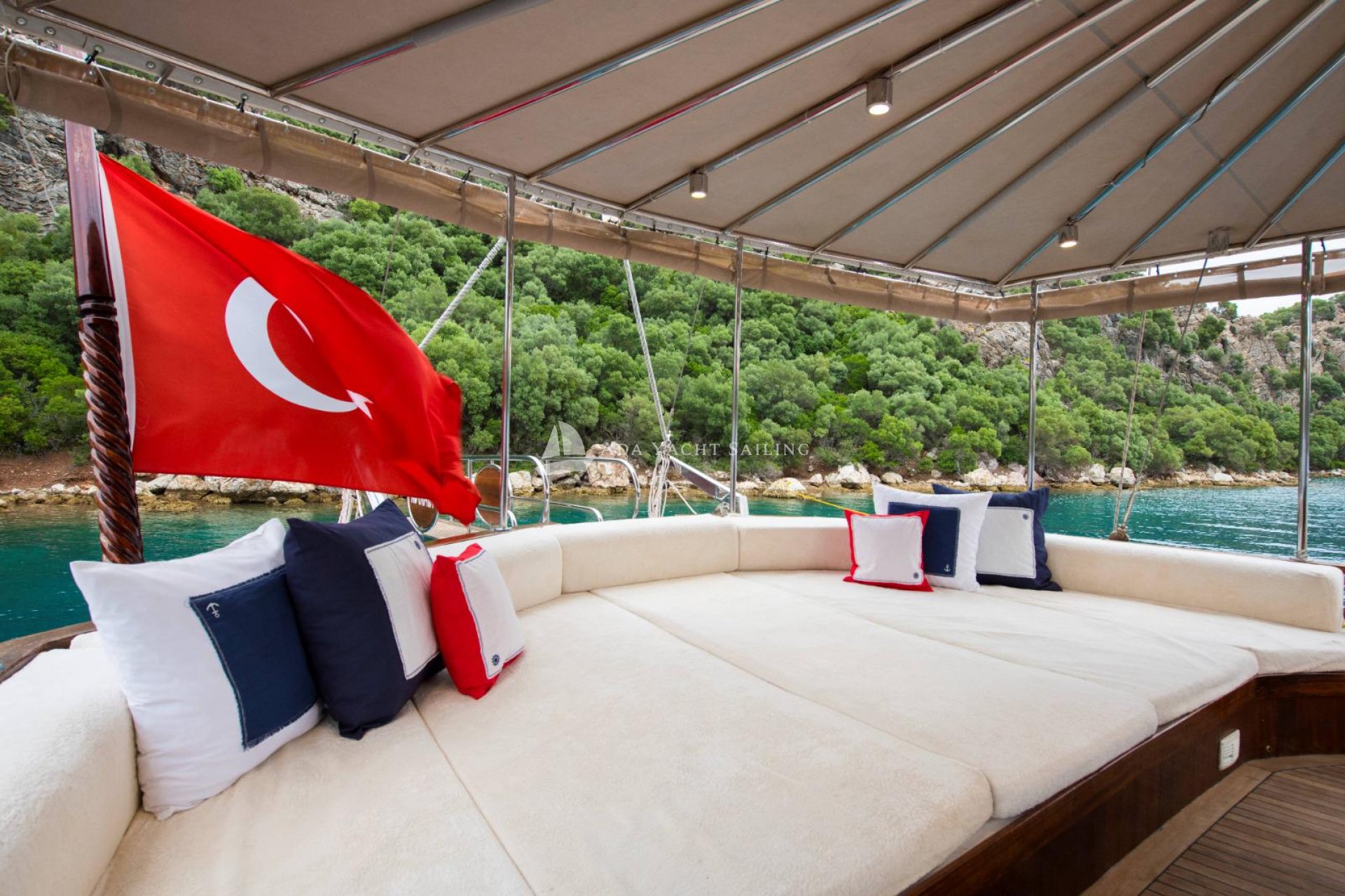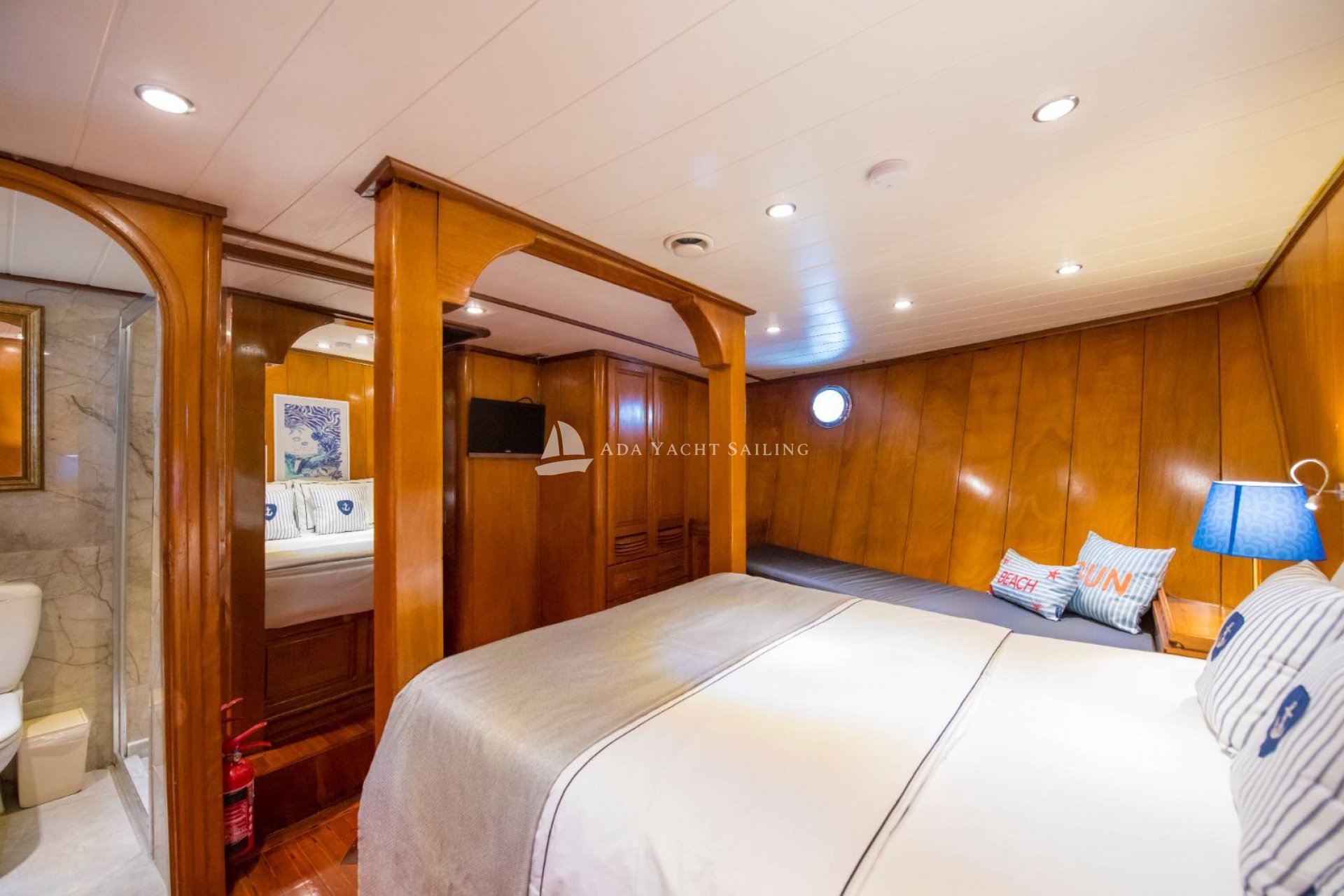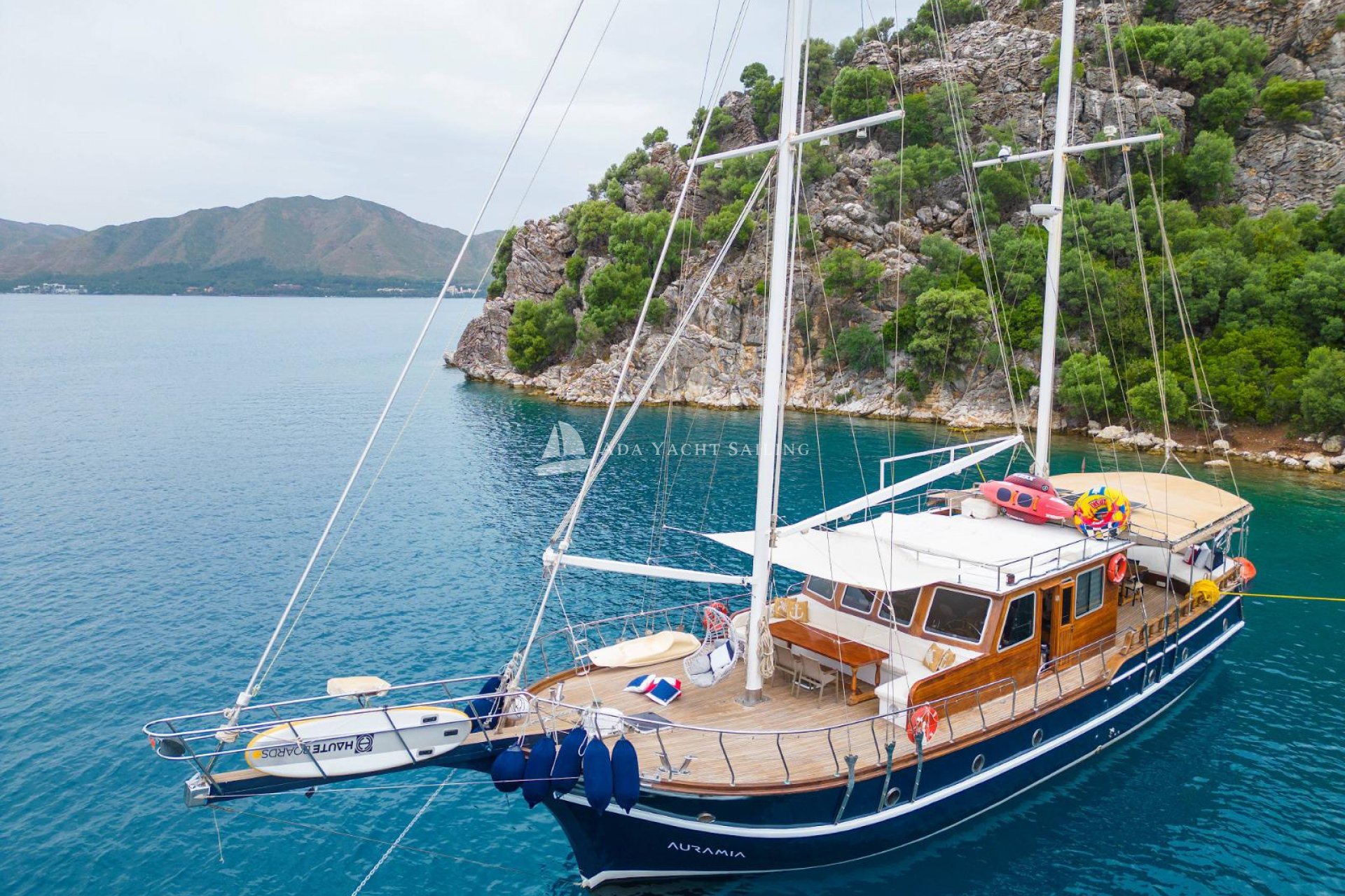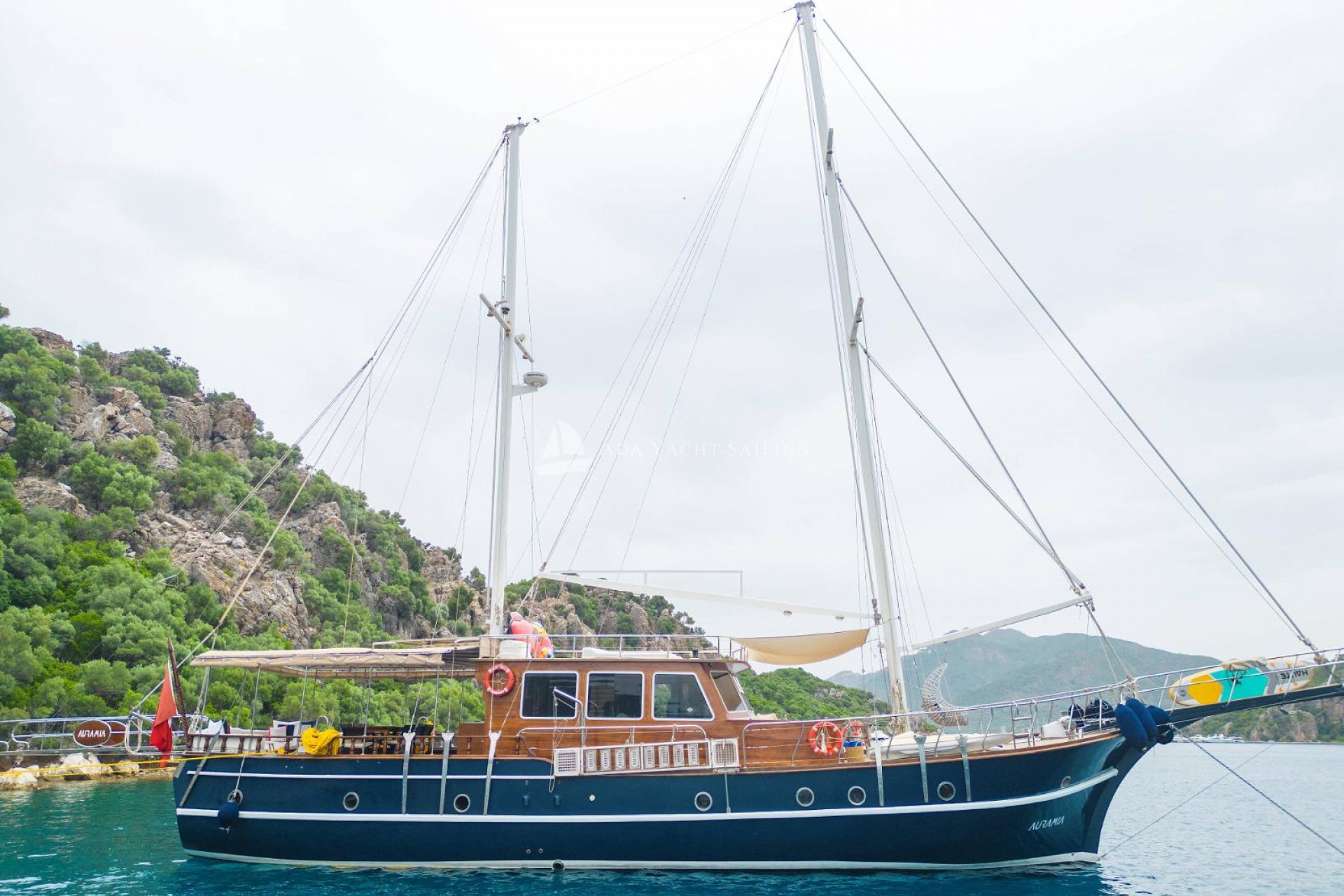 Marmaris, which connects the Aegean Sea to the Mediterranean, is particularly popular during the summer months. One of the main reasons for this is its magnificent bays, unparalleled elsewhere. These beautiful bays, where you can witness every shade of blue, are an essential location for those seeking a boat holiday experience immersed in nature. The Auramia gulet departs from Marmaris harbor and sails through the bays of Hisarönü, Marmaris. A deluxe gulet, it features two master and two double cabins. Each cabin has its own private bathroom and toilet, for a total of four. Cabin cleaning is provided upon request, and bathroom and toilet cleaning is provided regularly during the cruise. The Auramia gulet is 22 meters long and 6.50 meters wide. It can accommodate a total of eight guests. Departing from Marmaris harbor, the gulet cruises and anchors in the bays of Selimiye, Bozburun, Orhaniye, Söğüt, and Marmaris. Four professional crew members serve. Check-in time is 3:00 PM, and check-out time is 10:00 AM the morning after your last night.