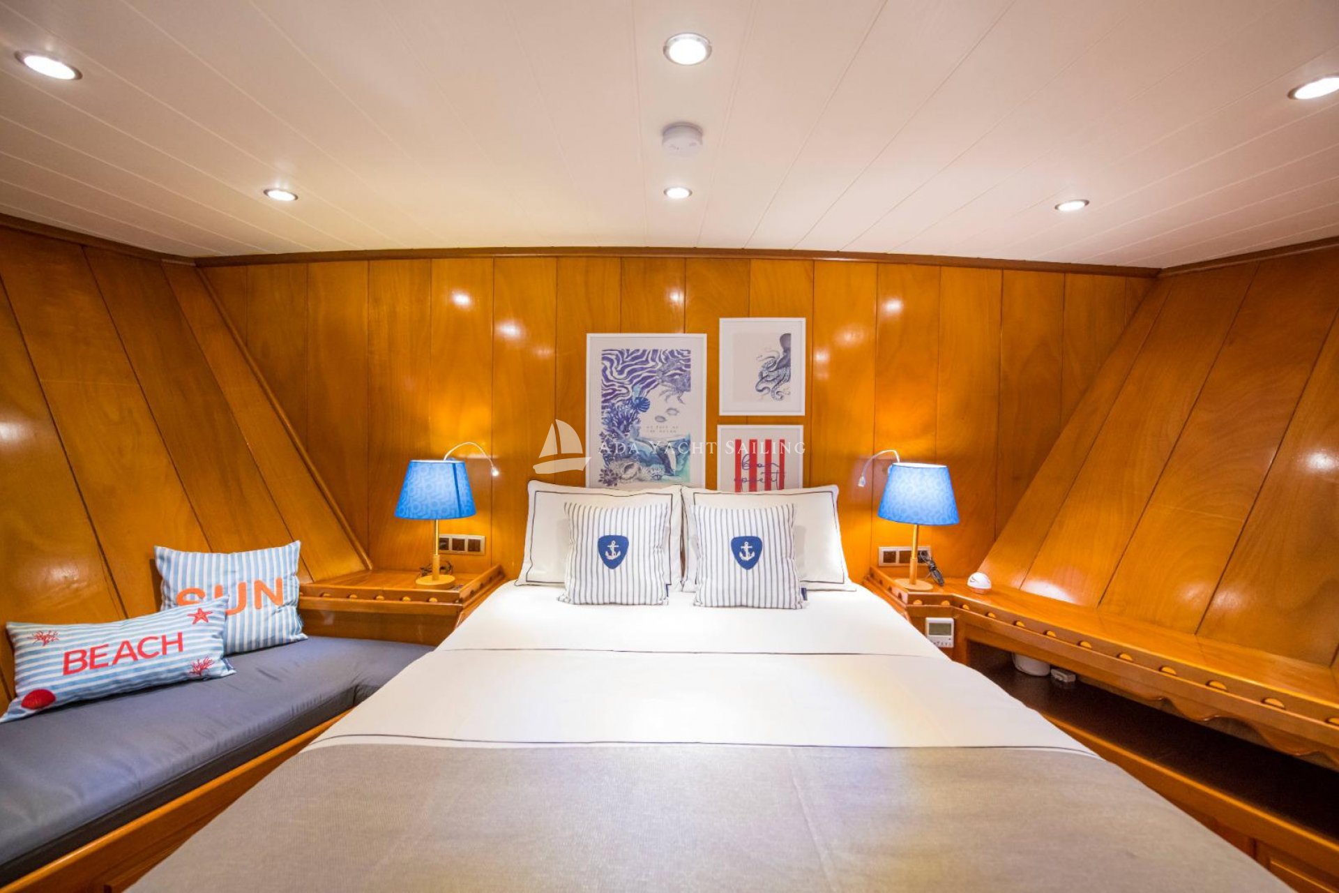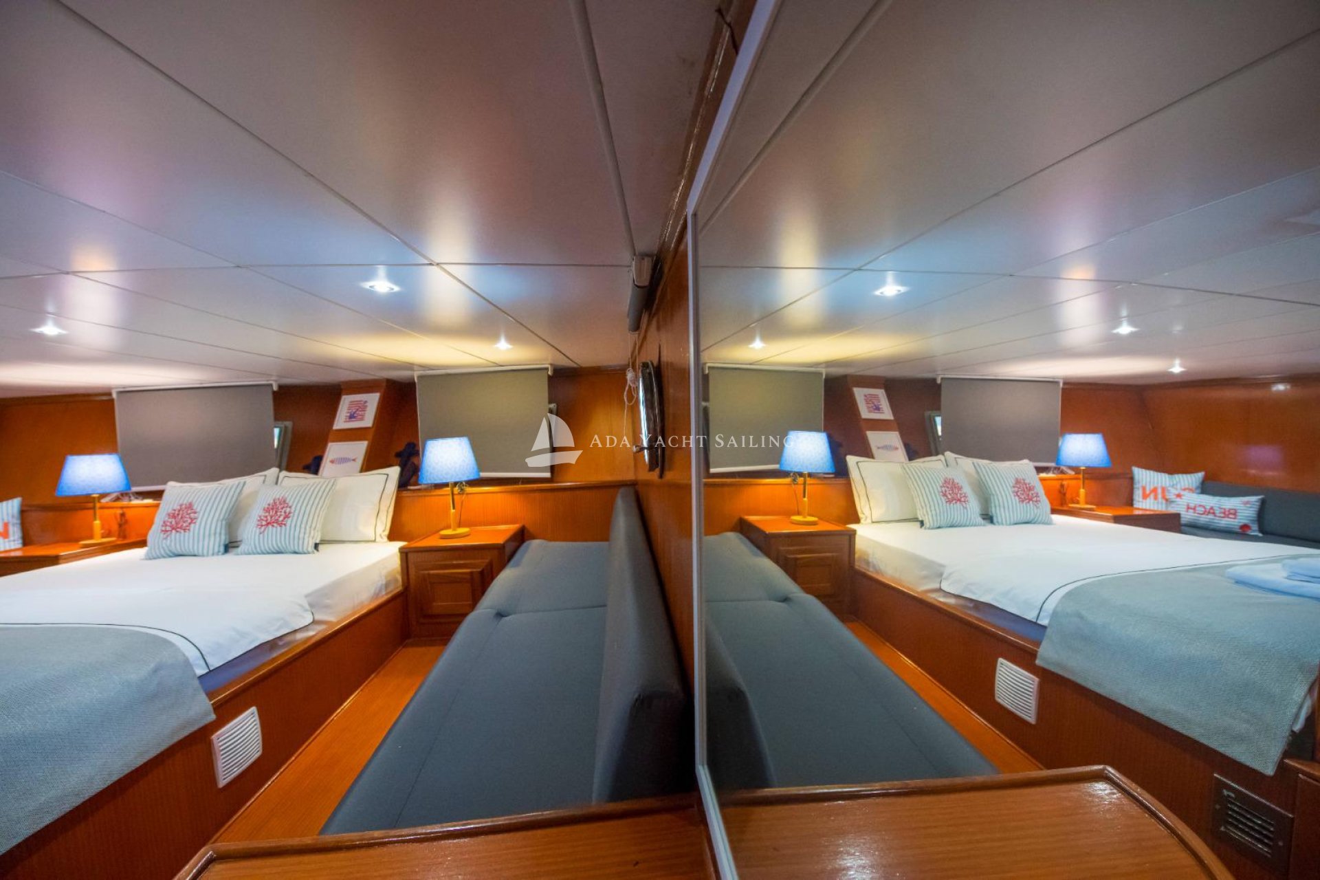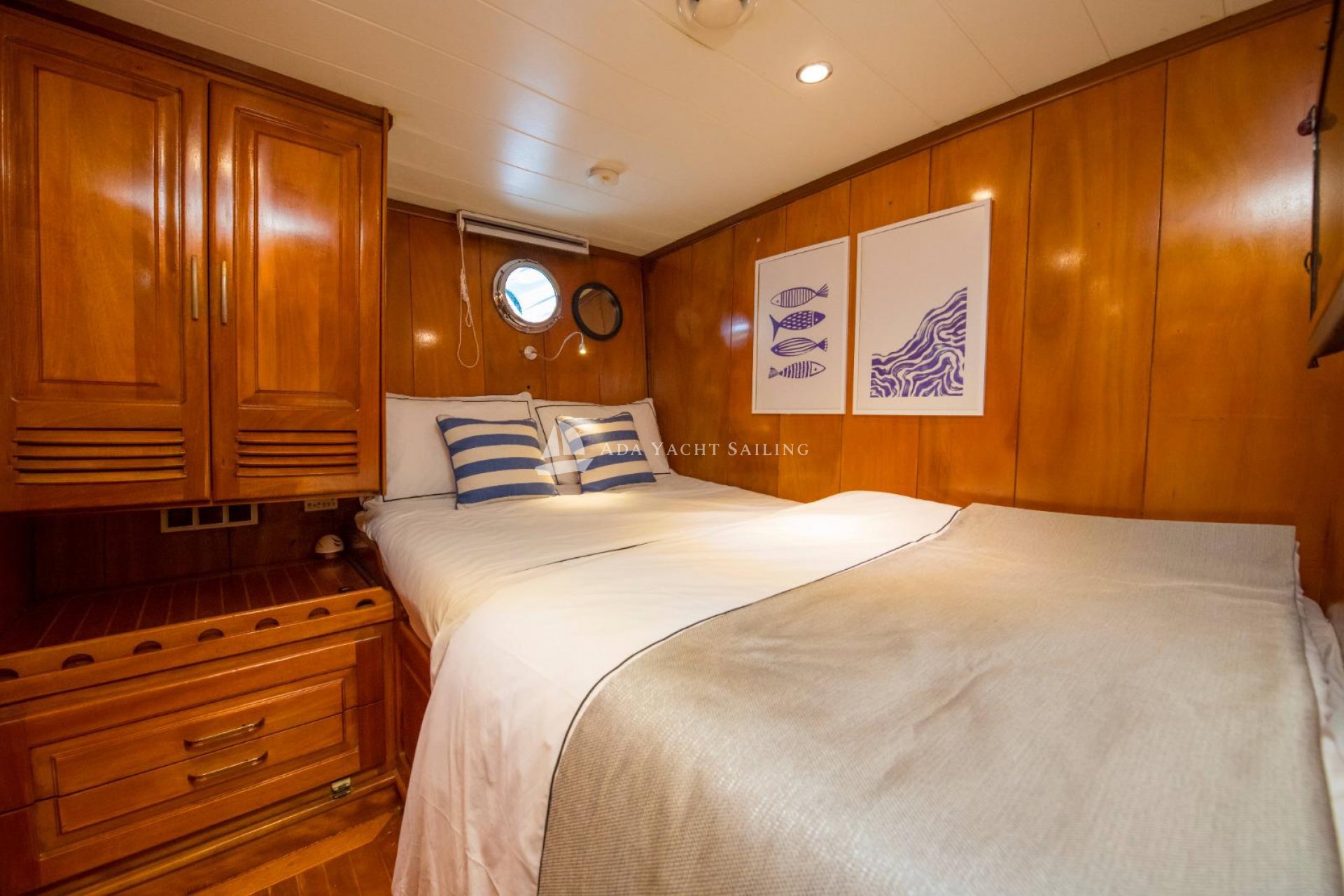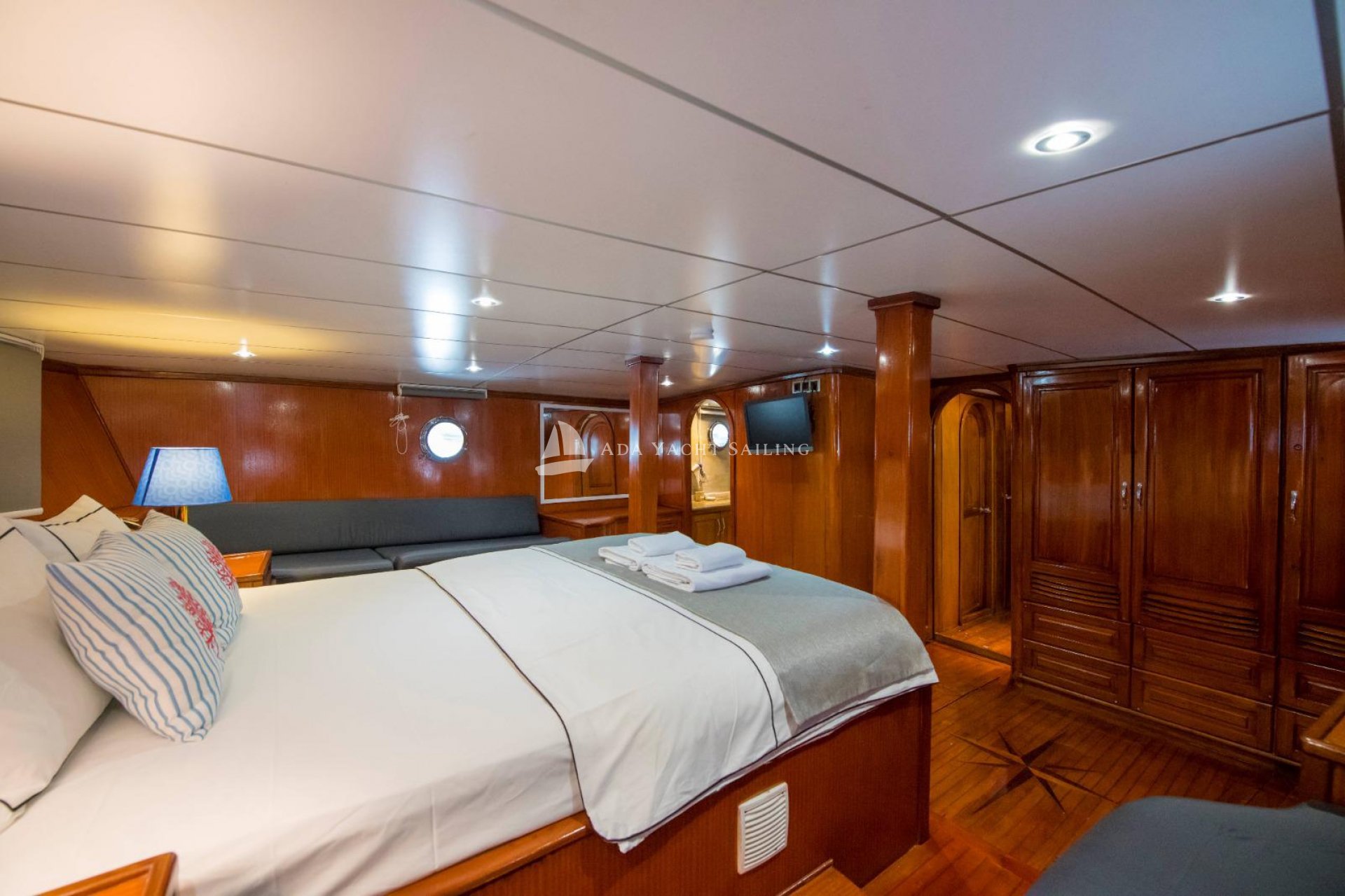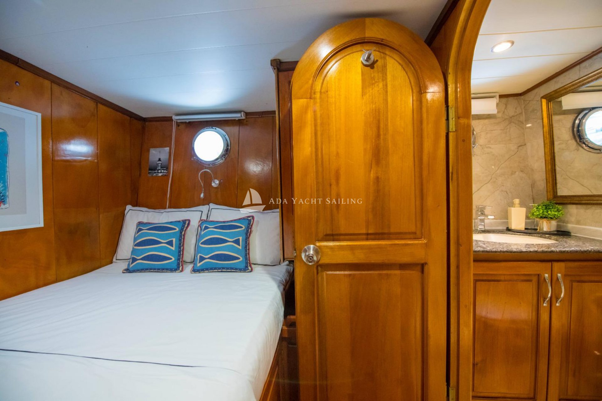 Marmaris, which connects the Aegean Sea to the Mediterranean, is particularly popular during the summer months. One of the main reasons for this is its magnificent bays, unparalleled elsewhere. These beautiful bays, where you can witness every shade of blue, are an essential location for those seeking a boat holiday experience immersed in nature. The Auramia gulet departs from Marmaris harbor and sails through the bays of Hisarönü, Marmaris. A deluxe gulet, it features two master and two double cabins. Each cabin has its own private bathroom and toilet, for a total of four. Cabin cleaning is provided upon request, and bathroom and toilet cleaning is provided regularly during the cruise. The Auramia gulet is 22 meters long and 6.50 meters wide. It can accommodate a total of eight guests. Departing from Marmaris harbor, the gulet cruises and anchors in the bays of Selimiye, Bozburun, Orhaniye, Söğüt, and Marmaris. Four professional crew members serve. Check-in time is 3:00 PM, and check-out time is 10:00 AM the morning after your last night.