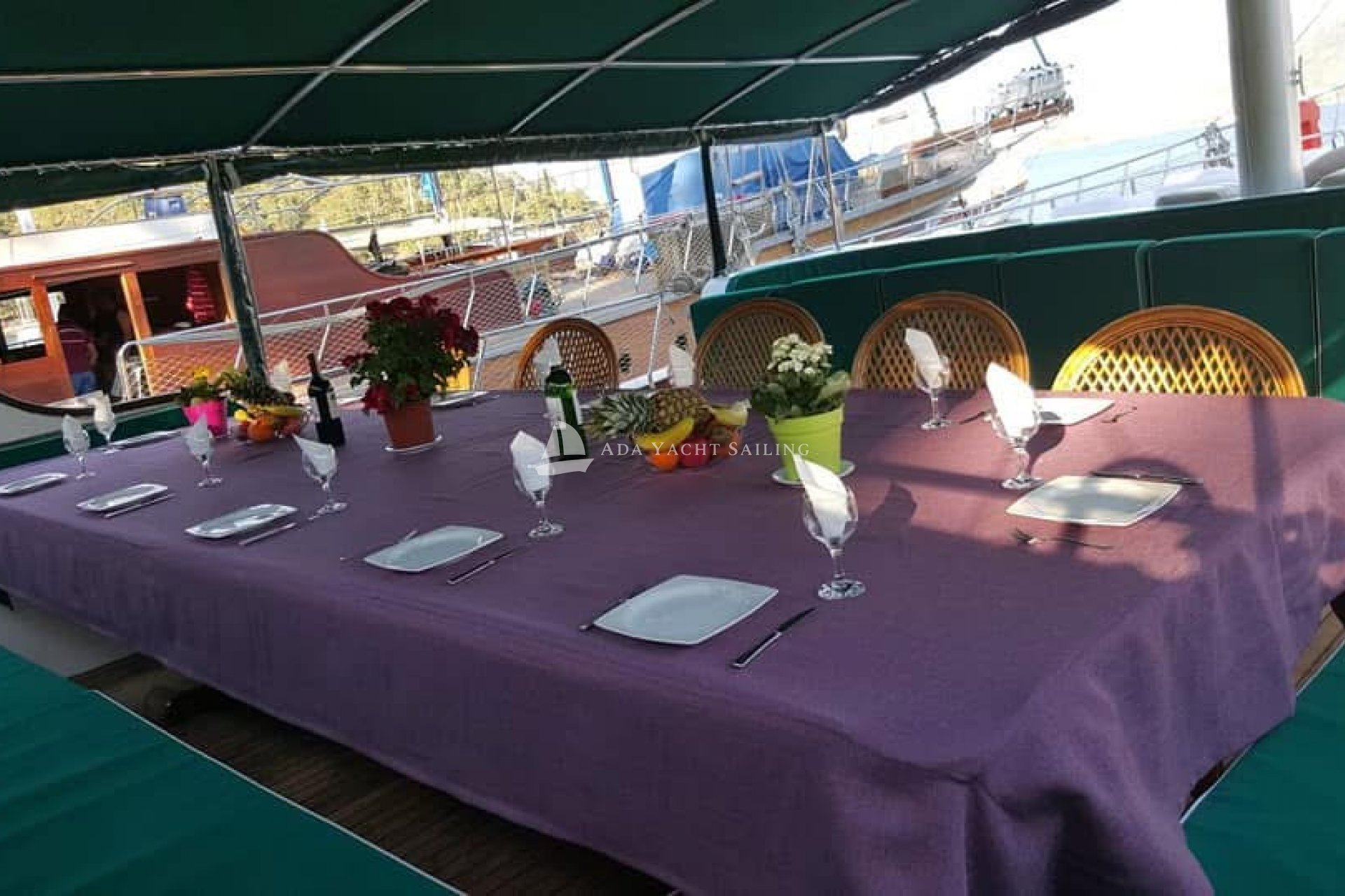 Вы можете насладиться нашими тщательно приготовленными блюдами на нашей полностью оборудованной кухне на палубе или за столиком в салоне. Завтрак, обед, полдник и ужин включены в стоимость аренды судна. Напитки не включены. Вы можете приобрести их в баре на борту.